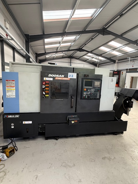 Used Doosan Puma 2500SY 2004 CNC Lathe. Barfeed, Swarf conveyor, Parts Conveyor, Live tooling, Static Tooling, Collet Chuck, Parts Catcher.
